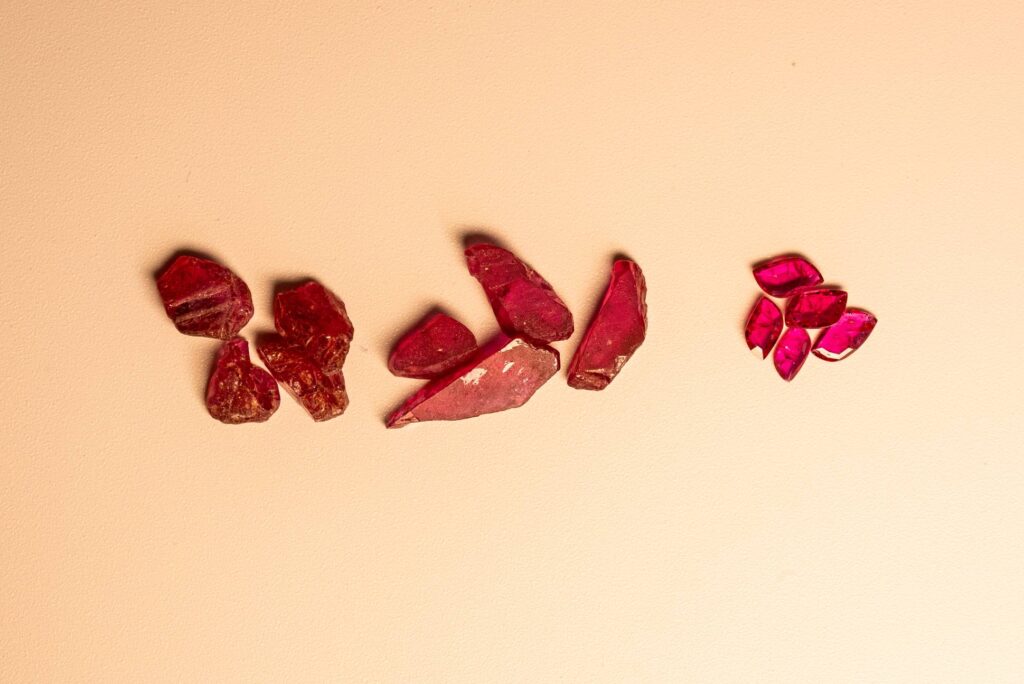 Each rough stone is carefully inspected for quality, size, and natural characteristics, followed by precise planning to determine the ideal cut, shape, and size that enhance its natural beauty and value.